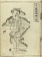 ![]() Aplicação de Moxa, ilustração de origem japonesa livro de Banshō myōhōshū (万象妙法集, 1853) | |