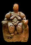 Esta abordagem mítico-religiosa de uma religião matriarcal prevaleceu entre as civilizações antigas e nos respectivos mitos. Descobertas arqueológicas revelam a existência de arte rupestre e de estatuetas de culto ao corpo feminino, à fertilidade e com isso à noção de origem da vida e do mundo.[10] As mais antigas noções de criação se originavam da ideia básica do nascimento, que consistia na única origem possível das coisas e esta condição prévia do caos primordial foi extraída diretamente da teoria arcaica de que o útero cheio de sangue era capaz de criar magicamente a prole. Acreditava-se que a partir do sangue divino do útero e através de um movimento, dança ou ritmo cardíaco, que agitasse este sangue, surgissem os "frutos", a própria maternidade. Essa é uma das razões pelas quais as danças das mulheres primitivas eram repletas em movimentos pélvicos e abdominais, que mais tarde ficaram conhecidos como dança do ventre. Muitas tradições referiram o princípio do coração materno que detém todo o poder da criação. Este coração materno, "uma energia capaz de coagular o caos espumoso".[11]