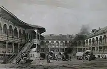 O sultão otomano Abdul Mejide I, a quem agradava o cariz antirrusso da revolta, pressionou os revolucionários para aceitar uma mudança menor na estrutura do executivo: o governo provisório cedeu a posição a uma regência mais moderada (Locotenenţa Domnească), a qual, no entanto, também não foi reconhecida pela Rússia.[80] O risco de mais uma guerra com a Rússia levou Abdul Mejide a rever a sua posição e enviou Fuat Paxá como seu observador para Bucareste. Ao mesmo tempo, instalou-se o pânico na cidade devido à possibilidade duma invasão russa e ao golpe de estado de êxito breve levado a cabo pelo metropolita Neofit II contra a revolução.[81] Em 18 de setembro, multidões de revolucionários invadiram o Ministério do Interior, destruíram as listas de títulos e privilégios dos boiardos e forçaram Neofit a lançar um anátema sobre o "Estatuto Orgânico", o que fez com que Fuat Paxá fizesse invadir a cidade por tropas otomanas. Estas só encontraram resistência por parte de um grupo de bombeiros estacionados na colina de Spirea, com quem se envolveram num tiroteio após um incidente que foi entendido como uma provocação.[82]