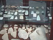 Durante a idade da pedra já existia uma actividade piscatória rudimentar na costa de Lagos, utilizando anzóis feitos a partir de chifres de veado, que foram encontrados pelo arqueólogo Estácio da Veiga em cavernas.[9] Calcula-se que então existisse um grande número de veados na região, uma vez que foram encontrados mais ferramentas feitas a partir dos chifres, e que serviam para a colheita e sementeira de trigos, cevadas, legumes, etc..[9] Na zona da Ameijeira, em Lagos, foi descoberta um assentamento do Neolítico médio, remontando a cerca de 4500 anos a.C., e que era principalmente constituído por uma oficina de talhe, que provavelmente era utilizada no fabrico de elementos para ferramentas agrícolas, actividade que então estava em pleno desenvolvimento.[10] Segundo as arqueólogas responsáveis, este local seria provavelmente um pequeno povoado, sendo uma evolução dos acampamentos temporários do paleolítico, embora ainda não pudesse ser considerado como uma aldeia.[10] Este não foi o único vestígio da época neolítica na região de Lagos, tendo igualmente sido encontrados vários menires, como o de Odiáxere.[11]