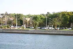 Em 12 de Outubro de 1897, o rei D. Carlos chegou a Lagos de barco, acompanhado da sua esposa Amélia de Orleães.[113] A cerimónia iniciou-se com a chegada dos escaleres trazendo o casal real e os outros convidados, que passaram pelo meio de duas alas formadas por centenas de embarcações decoradas para o efeito, e onde se encontrava uma grande multidão que lançava foguetes e saudava os reis.[113] A cidade de Lagos também foi decorada para esta visita, com ornamentos em todas as ruas desde a Praça da Constituição até à Rua da Porta de Portugal, enquanto que das janelas pendiam colchas.[113] O casal real desembarcou na Praça da Constituição e dirigiu-se para a Igreja de Santa Maria, seguindo depois para os Paços do Concelho, onde se ouviu um discurso do presidente da câmara e se tomou uma refeição.[134] Durante a cerimónia, o casal real lançou a primeira pedra para a construção do paredão, embora a obra não tenha chegado a avançar.[135] Em 1902, o governo ordenou que fossem feitas obras de reparação nas muralhas entre a Ribeira e a Porta de Portugal, depois de muitas reclamações por parte da autarquia.[136]