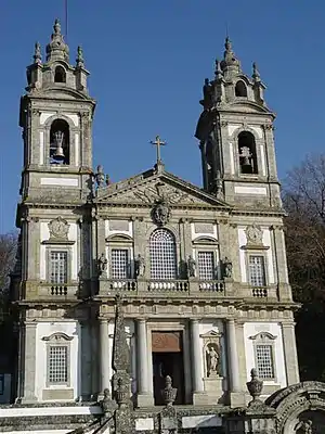 - 1722 - o arcebispo D. Rodrigo de Moura Teles autonomeou-se juiz da Confraria e decidiu empreender a reconstrução do pequeno santuário, encarregando provavelmente Manuel Pinto de Vilalobos de fazer o plano geral, com o alargamento e regularização das rampas, construção de oito novas capelas, de que apenas restam as duas primeiras, e o escadório dos 5 Sentidos, sendo algumas das esculturas da autoria de António Campos Peixoto e os plintos do pedreiro Ambrósio dos Santos; o bispo deixou em testamento a quantia de cinco mil cruzados para a conclusão das obras;