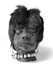 Alguns grupos indígenas da região equatorial da América do Sul praticavam um costume de reduzir cabeças humanas como parte de um ritual que podia ser tanto de guerra quanto de um possível sacrifício em honra dos deuses. Eles acreditavam que o espírito do sacrificado estava na cabeça. Para tanto, eles cortavam a pele da nuca ao pescoço e retiravam o crânio (toda a parte óssea), o cérebro, olhos e todas as partes moles. Colocavam a pele a ferver numa panela com algumas ervas que faziam a cabeça ir reduzindo aos poucos e não deixavam que o cabelo se soltasse. Depois de reduzida, a retiravam da água e costuravam o corte na nuca, a boca e os olhos. Pedras quentes ou areia eram colocadas no interior da cabeça até conseguirem o tamanho ideal e o formato mais aproximado do rosto do inimigo. Ao final, defumavam a cabeça para que ela ficasse escura e tudo isso tinha um importante significado.