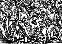 Ao chegar a Tomebamba, os Cañaris, desejando se independizar de Quito e do Rumiñahui, não os combateram, mas se ofereceram como os seus aliados, prestando valiosa ajuda, guiando-os pela desconhecida terra pela que transitavam e salvando-os inúmeras vezes de cair nas ciladas e emboscadas com que o astuto Rumiñahui os esperava.[14] Em Tiocajas se travou uma batalha que ficou indecisa, e na qual combateram os 12 mil soldados do Rumiñahui contra os espanhóis e 11 mil Cañaris. Rumiñahui continuou seu caminho em direção norte para organizar mais outra resistência e destruir Quito, capital do reino com o objetivo de impedir que os tesouros foram roubados pelos invasores.