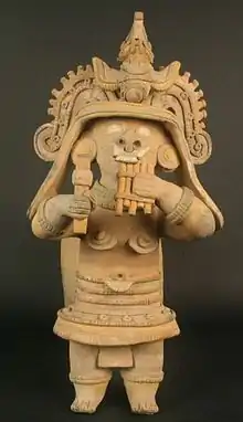 Na cultura La Tolita, houve uma enorme produção de estatuetas cerâmicas, de um tamanho entre 7 e 20 centímetros, e as representações de homens com máscaras, grandes penteados e emblemas de poder foram muito freqüentes. Também são abundantes as representações de seres mitológicos definidos como “dragões” (metade homem, metade animal) quem devido às constantes referências do mundo felino (garras, dentes), adquiriam em ocasiões um aspecto de fera.[8] Em Bahia e em Jama-Coaque, personagens de maior tamanho representam complicados penteados semicirculares rematados em picos ou em dois grandes coques, carregados de elementos simbólicos e enfeitados com orelhas, narigueiras –que perfuravam o lóbulo da orelha e o septo nasal- e barbas postiças e “bezotes”, um enfeite que se colocavam debaixo do lábio.