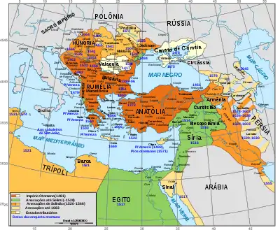 No século XIV, turcos otomanos e iranianos (persas) disputaram entre si a supremacia da região até que o Império Otomano assegurou seu controle no século XVII, o qual durou até o século XIX. Os turcos otomanos, não-árabes originários da Ásia Central e convertidos ao Islã sunita, há muito tempo vinham pressionando o Império Bizantino, acabando por instalar a sua capital na cobiçada Constantinopla, a antiga Bizâncio, então rebatizada de Istambul pelos turcos. (Ver: Queda de Constantinopla).