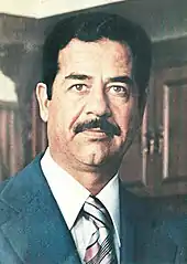 Em 15 de julho de 1979, data da demissão de Ahmed Hassan al-Bakr por motivos de saúde, o general sunita Saddam Hussein al-Tikriti assumiu o poder, cercando-se imediatamente de uma dezena de oficiais leais, os quais colocou em cargos de responsabilidade. É então que o poder se torna verdadeiramente autocrático, com os primeiros anos de governo do auto-intitulado El-Raïs el-Monadel (o Presidente Combatente) a serem marcados pela execução de centenas de oposicionistas e o gaseamento de 5 000 curdos em Halabja.