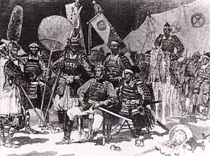 As Guerras Genpei (源平合戦 Genpei kassen ou Genpei gassen?) foram uma série de guerras civis que evolveram os clãs mais influentes da acção política do país, designadamente os clãs Taira e Minamoto. Estas guerras ocorreram entre 1180 e 1185.[49] Em 1180, instalaram-se no país duas revoluções independentes, que envolveram duas gerações distintas do clã Minamoto. Uma das revoluções sucedeu-se em Quioto e foi chefiada pelo veterano Minamoto no Yorimasa, enquanto que a outra ocorreu na província de Izu, comandada pelo jovem Minamoto no Yoritomo. Ambas as revoltas foram apaziguadas com relativa facilidade. Na província de Izu, Yoritomo foi forçado a fugir de Kanto, enquanto que em Quioto, Yorimasa foi vencido na batalha de Uji, onde cometeu seppuku antes de ser capturado.[50]