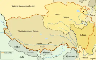 A República Popular da China estabeleceu subdivisões autônomas tibetanas na antiga província tibetana de Kham, U-Tsang e Amdo. Estas subdivisões estão em número de 13; com uma região autônoma, dez prefeituras e dois municípios.[43]