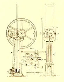 - 1857: Eugenio Barsanti e Felice Matteucci descrevem os princípios do motor de pistão livre, onde o vácuo após a explosão permite que a pressão atmosférica produza o golpe de força (patente britânica nº 1625).[14]