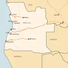 A maior das linhas férreas do país, e uma das maiores do continente africano, o Caminho de Ferro de Benguela começou a ser construída em 1899, tendo conectado, já em 1912, as duas cidades portuárias do Lobito e Benguela com Huambo. Esta linha no centro de Angola, incluiu cerca de dois quilómetros de um troço com cremalheiras e taludes acima de seis por cento.
