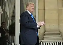 Em 2017, Obama foi sucedido na presidência por Donald Trump, um republicano, que havia vencido as eleições do ano anterior.[1][2] Trump venceu a disputa contra a democrata Hillary Clinton no colégio eleitoral, embora tenha conquistado menos votos que sua concorrente, fazendo dele apenas o quinto presidente a ser eleito mesmo tendo perdido no voto popular geral.[3] Protestos contra o presidente foram registrados em várias cidades pelos Estados Unidos. Trump foi eleito com uma plataforma polêmica, voltada para assuntos domésticos, de caráter protecionista e nacionalista.