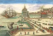 Durante o século XVI, Portugal também começou a colonizar o recém-descoberto território do Brasil. No entanto, os postos de troca temporária foram estabelecidos anteriormente para recolher pau-brasil, utilizado como corante, e com assentamentos permanentes foi a criação da indústria de cana-de-açúcar e seu trabalho intensivo. Vários primeiros assentamentos foram criados, entre eles a capital colonial, Salvador, fundada em 1549 na Baía de Todos os Santos (no norte) e a cidade do Rio de Janeiro (no sul) em 21 de janeiro de 1567. Os colonos portugueses aprovaram uma economia baseada na produção de bens agrícolas, que eram exportados para a Europa. O açúcar tornou-se, de longe, o produto mais importante extraido do Brasil até o início do século XVIII, quando o ouro e outros minerais assumiram uma maior importância.[54][55]