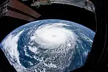 Imagem de satélite do furacão Dorian atingindo seu pico de intensidade na categoria 5 em 1 de setembro de 2019 | |