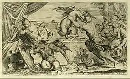 A gravura repete a frase em latim que descrevia o afresco: «AT VENVS ÆNEAM CERTANTEM EX IGNÆ RECEPIT» ("Mas Vénus livrou o guerreiro Eneias do fogo").