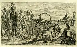 A gravura repete a frase em latim que descrevia o afrescoa «NEPTVNO MERITOS ARIS INDICIT HONORES» ("No altar, as devidas honras a Neptuno") resume os versos da Eneida (III, 117-119) que descrevem o ritual de sacrifício representado no afresco/gravura.