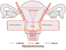 Histerectomia é uma operação cirúrgica da área ginecológica que consiste na remoção do útero. A histerectomia é quando se retira o corpo e o colo do útero. Por vezes, esta cirurgia é acompanhada da remoção simultânea dos ovários e trompas (histerectomia total com anexectomia bilateral ou histerectomia radical).[2]