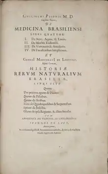 Historia Naturalis Brasiliae (em português: História Natural do Brasil), escrito originalmente em latim, é o primeiro livro médico que trata do Brasil, publicado em 1648, de autoria do holandês Guilherme Piso, em que este se utiliza, ainda, de observações feitas pelos alemães George Marcgraf e H. Gralitzio, e ainda de João de Laet. A obra consta de volume único, medindo no original, 40 centímetros de altura, e seu título completo, com subtítulo, é: "Historia naturalis Brasiliae … : in qua non tantum plantae et animalia, sed et indigenarum morbi, ingenia et mores describuntur et iconibus supra quingentas illustrantur".[1] Foi editado, como consta de seu frontispício, em: Lugdun. Batavorum[2] : Apud Franciscum Hackium ; et Amstelodami:[3] Apud Lud. Elzevirium[4] - nome latino da editora, ainda existente, Elsevier.[5] Embora trate a todo momento do Brasil, os autores se referem à faixa litorânea do Nordeste, então ocupada pela Companhia Holandesa das Índias Ocidentais. A obra foi dedicada ao Conde Maurício de Nassau.[4]