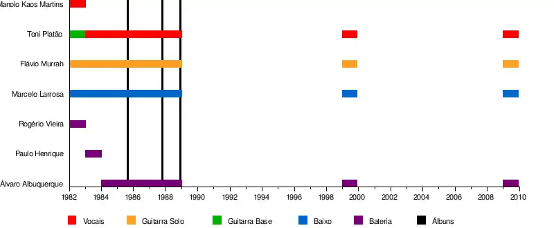 - Toni Platão - vocais (1983-1989, 1999, 2009), guitarra base[3] (1982 - 1983)