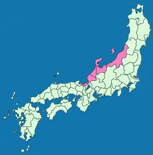 Quando o sistema Gokishichidō foi inicialmente estabelecido após a Reforma Taika, consistia de apenas duas províncias: Wakasa e Koshi. Durante o reinado do Imperador Tenmu, Koshi foi dividida em três províncias: Echizen, Etchū e Echigo, e a Ilha de Sado foi adicionada como a quinta província, Sado. Mais tarde, Noto e Kaga foram separadas de Echizen para formar sete províncias no total.