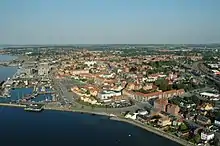O município tem uma área de 159,47 km² e uma população de 34 672 habitantes, segundo o censo de 2004. Fica nas margens do fiorde de Ise, tem estaleiros navais e explora a pesca.
