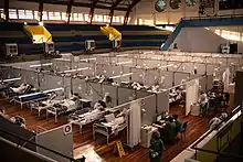 Um hospital de campanha é uma pequena unidade médica móvel, ou mini-hospital, que cuida temporariamente das vítimas no local antes que possam ser transportadas com segurança para instalações mais permanentes. Este termo é usado predominantemente com referência a situações militares, mas também pode ser usado em tempos de desastre. O conceito foi herdado do campo de batalha e agora é aplicado em caso de desastres ou acidentes graves, assim como na medicina militar tradicional.[1]