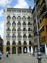 O hotel situa-se na Praça do Castelo, no coração da centro histórico e um dos lados dá para a Rua Estafeta, uma das artérias percorridas pelos mundialmente famosos encierros (largadas de touros) dos Sanfermines (Festas de São Firmino). Esta sua localização seria provavelmente razão suficiente para a sua popularidade, nomeadamente durante os Sanfermines, período em as janelas ou varandas da Rua Estafeta são os locais mais cobiçados para assistir aos encierros.[1]
