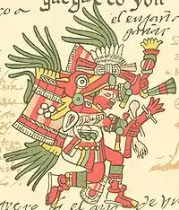 Huehuecoyotl, também conhecido como "O velho coiote", é o deus Asteca da dança, música, trapaça e sexo, geralmente representado como um coiote vermelho com pés e mãos humanas usando penas verdes. Embora fosse geralmente retratado como do sexo masculino, Huehuecoyotl faz parte da família Tezcatlipoca, e portanto herdou a capacidade de mudar de forma a vontade, incluindo o sexo.[1][2]