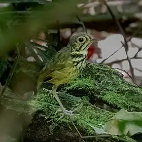 Assim como a maioria dos Grallariidae, os membros do complexo Hylopezus macularis são muito sensíveis aos efeitos da perda, fragmentação e perturbação de habitat.[5]
