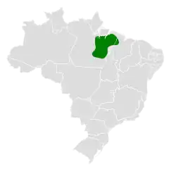Ocorre na Amazônia Ocidental, restrita ao norte do interflúvio Xingu-Tocantins e ao Centro de Endemismo Belém.[2]