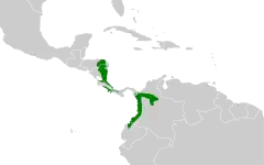 Pode ser encontrada nos seguintes países: Colômbia, Costa Rica, Equador, Honduras, Nicarágua e Panamá.[1]