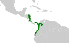 Pode ser encontrada nos seguintes países: Colômbia, Costa Rica, Equador, Honduras, Nicarágua e Panamá.[1]