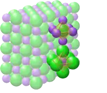 Compostos iônicos no estado sólido formam uma estrutura iônica contínua em um cristal iônico. A forma mais simples de cristal iônico é um cúbico simples. Nessa forma todos os átomos estão posicionados nas extremidades de um cubo. Essa célula unitária tem a massa que é a mesma de 1 dos átomos envolvidos. Quando todos os íons têm aproximadamente o mesmo tamanho, eles podem formar uma estrutura igual chamada cúbica de face-centrada (onde a massa é 4 vezes massa atômica), mas, quando os íons têm tamanhos diferentes, a estrutura é geralmente cúbica de corpo-centrado (2 vezes a massa). Em retículos iônicos o número de coordenação se refere ao número de íons que cada retículo está ligado.