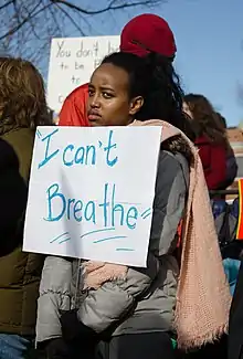 I can't breathe (português: "Não consigo respirar") é um slogan associado ao movimento Black Lives Matter nos Estados Unidos. Derivada das palavras de Eric Garner e George Floyd, dois homens afro-americanos que morreram sufocados durante suas prisões em 2014 e 2020 como resultado de força excessiva por policiais brancos, a frase é usada em protesto contra a brutalidade policial nos Estados Unidos. A frase, dita por Floyd e Garner, teve em inspiração a faixa musical de uma das artistas mais aclamadas no ramo de R&B, H.E.R., em protesto aos tratamentos de pessoas afro-americanas na sociedade. A faixa ganhou na categoria de Song of the Year (português: "Canção do Ano") na 63° edição da premiação musical Grammy.