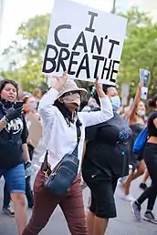 Em maio de 2020, o oficial do Departamento de Polícia de Minneapolis, Derek Chauvin, matou George Floyd ao colocar seu joelho na nuca dele por 8 minutos e 46 segundos. O vídeo de um espectador do incidente mostrou Floyd dizendo I can't breathe várias vezes. Apesar de seus pedidos, e de um espectador exclamando que o policial estava impedindo Floyd de respirar, Chauvin continuou a contenção por dois minutos e 53 segundos depois que Floyd deixou de responder, enquanto outros três oficiais observavam.[16] I can't breathe se tornou um grito de guerra nos protestos subsequentes em todo o país.[17] Os manifestantes o adotaram como um canto.[18] Em seu primeiro discurso público sobre a morte e os protestos de George Floyd em 2 de junho, o candidato presidencial Joe Biden começou com: "I can't breathe. I can't breathe. As últimas palavras de George Floyd. Mas elas não morreram com ele. Elas ainda estão sendo ouvidas. Elas estão ecoando por todo o país".[19] Nesse mesmo dia, as redes pertencentes à Viacom interromperam sua programação para mostrar uma tela preta por oito minutos e 46 segundos com as palavras I can't breathe exibidas.[20]