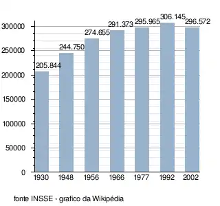 - Instituto Nacional de Estatísticas, "População de acordo com censo de 1948, 1956, 1966, 1977, 1992 e 2002"