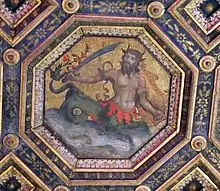 Ictiocentauro armado no Teto dos Semideuses, de Pinturicchio, no Palácio dos Penitenciadores, em Roma