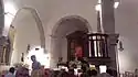 No interior, as três naves são separadas por arcos de pedra, ogivais, apoiados em colunas de 1,70m de altura, com bases e capitéis oitavados, ornados por hemisférios[[ ou cordas. Do recheio destacam-se a grade de ferro, decorada com figuras nas extremidades: em cima, S. José; à direita, [[]Nossa Senhora]]; à esquerda, S. João Evangelista, e, em baixo, Santa Maria Madalena.