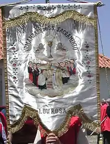 Em 1811 a igreja sofreu diversos saques e destruições devidamente documentados e estudados, provocados pela terceira e última Invasão Francesa que entrou pelas Beiras[17]. Ainda nesse século, em 1884 (data oficial, mas eventualmente um pouco anterior) seria criada a Irmandade do Santíssimo Sacramento cuja sede seria a igreja de Lourosa e que ainda hoje perdura[18].(Fig. 12: estandarte da Irmandade)