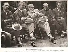 Pretendendo-se dar início às obras de recuperação da igreja, Lourosa recebe a 1 de Junho de 1930 a visita de várias dessas personalidades referidas, como o Eng. Henrique Gomes da Silva, do Arq. Baltazar de Castro, do Prof. Dr. Alfredo de Magalhães, e também do Cónego Aguiar Barreiros (historiador de Arte), do Arq. José Vilaça (o principal autor dos projectos de arquitectura), e do já referido Marques Abreu, que disso dá conta na revista de que era editor[24]. (Fig. 18: Notáveis em Lourosa)