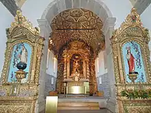 Interessante é que o retábulo de cor expressivas como o conhecemos hoje, outrora era esbranquiçado com adornos dourados.[4]