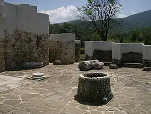 Em conjunto com as paredes norte e sul, a entrada do nártex efetivamente isola do átrio dois compartimentos retangulares e de pequena dimensão[16] as quais são acessíveis através de portas. No compartimento norte encontra-se uma pequena necrópole, enquanto o compartimento sul seria provavelmente um batistério, pois há ali uma instalação quadrangular com um cano de argila que remete para a imagem de uma pia batismal. Porém, Nikolova considera seu formato muito pouco usual e a profundidade imprópria para o batismo. Em alternativa, propõe que se trate de uma pia para água benta.[54]