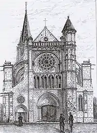 Outra singularidade é a sua torre sineira que, em vez de se encontrar sobre o pórtico do templo, encontra-se sobre a cabeceira. Por último, esta cabeceira é arrematada por um plano reto, incomum para este período, quando a maioria das suas contemporâneas o são por um plano semi-circular. Esta torre, que domina a cidade, pode ser percebida a quilómetros sobre a planície de Brie.