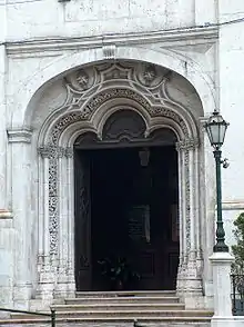 O portal da igreja, em estilo manuelino, é considerado uma das obras a destacar desta época. Pensa-se que ele tenha vindo da Igreja da Conceição dos Freires, também destruída pelo terramoto. Neste portal, de arco trilobado, podem-se observar duas esferas armilares.