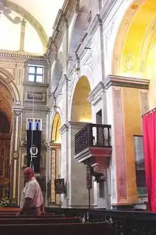 Sobre o paravento da igreja desenvolve-se um largo coro alto, com órgão próprio.