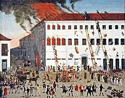 Incêndio no Recolhimento de N. S. do Parto, em agosto de 1789. Pintura de Francisco Muzzi.