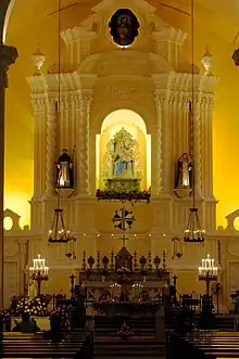 No grande altar barroco, decorado em talha dourada, há uma estátua branca e creme da Virgem Maria e do Menino Jesus e há também pinturas de Cristo, de São Domingos (fundador dos dominicanos) e de Santa Catarina de Sena (uma das padroeiras da Diocese de Macau). A igreja tem uma boa colecção de santos esculpidos em marfim e madeira.
