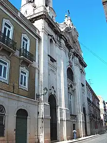 A fachada da igreja apresenta duas torres sineiras e no seu interior podem-se observar algumas obras de Vieira Lusitano. O tecto da nave é todo preenchido por pinturas. Na decoração do interior da igreja foram utilizados diversos mármores e talha douradas.
