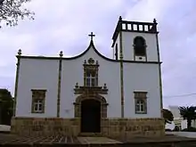 De arquitetura simples, encontra-se erguida em alvenaria de pedra rebocada e caiada, e apresenta um corpo principal de planta retangular com diversos corpos adossados, correspondentes ao batistério, à torre sineira (a Leste), aos braços do falso transepto e à sacristia. A capela-mor, de planta rectangular, é mais estreita que o corpo principal. O conjunto é acedido por uma escadaria e um adro, à esquerda do qual se ergue o "theatro", para a realização dos tradicionais Impérios.