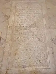 A laje sepulcral está colocada no chão da capela, no espaço fronteiro ao epitáfio.